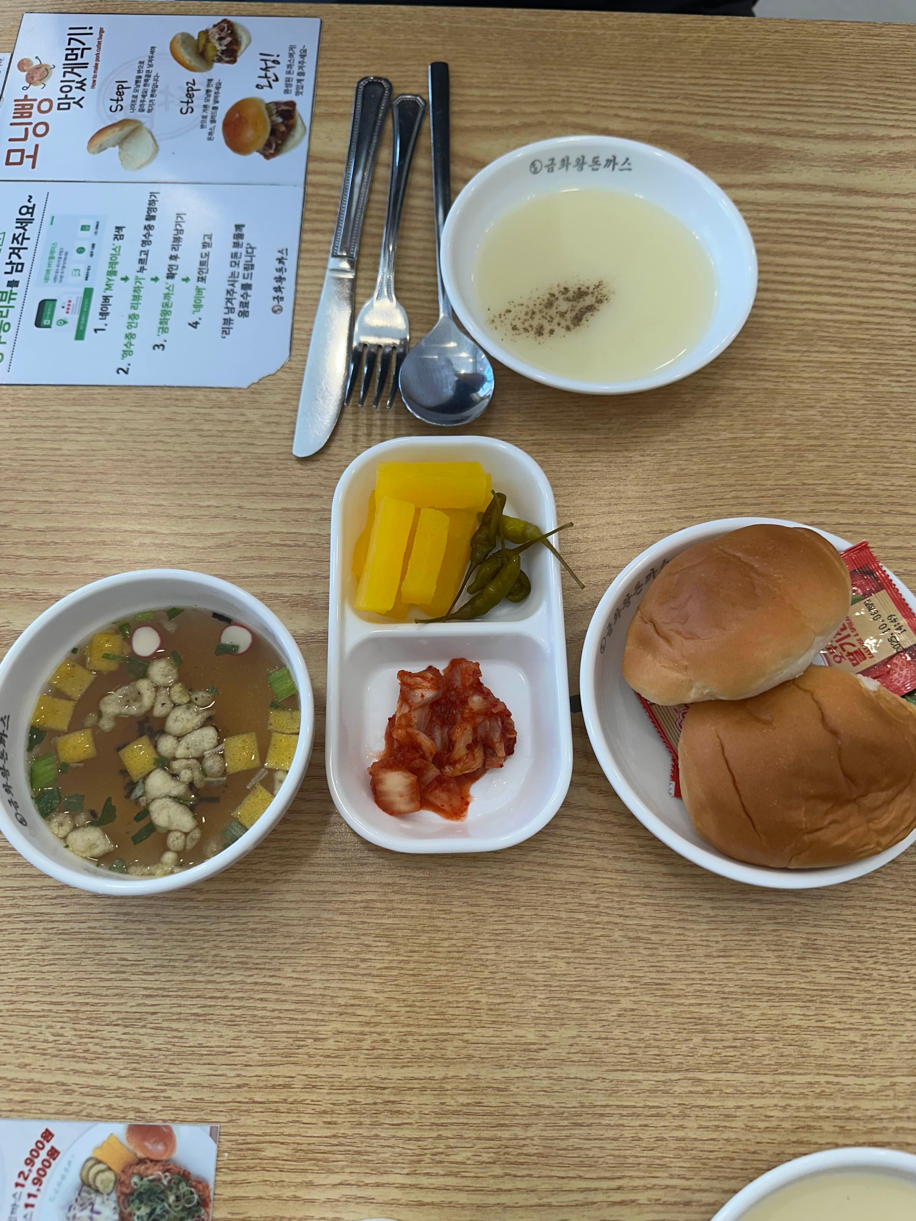 - 스프 맛이 대기업 급식 느낌인데 전혀 나쁘지 않아요. 장국도 있어 국물파인 저에겐 완전 만족!