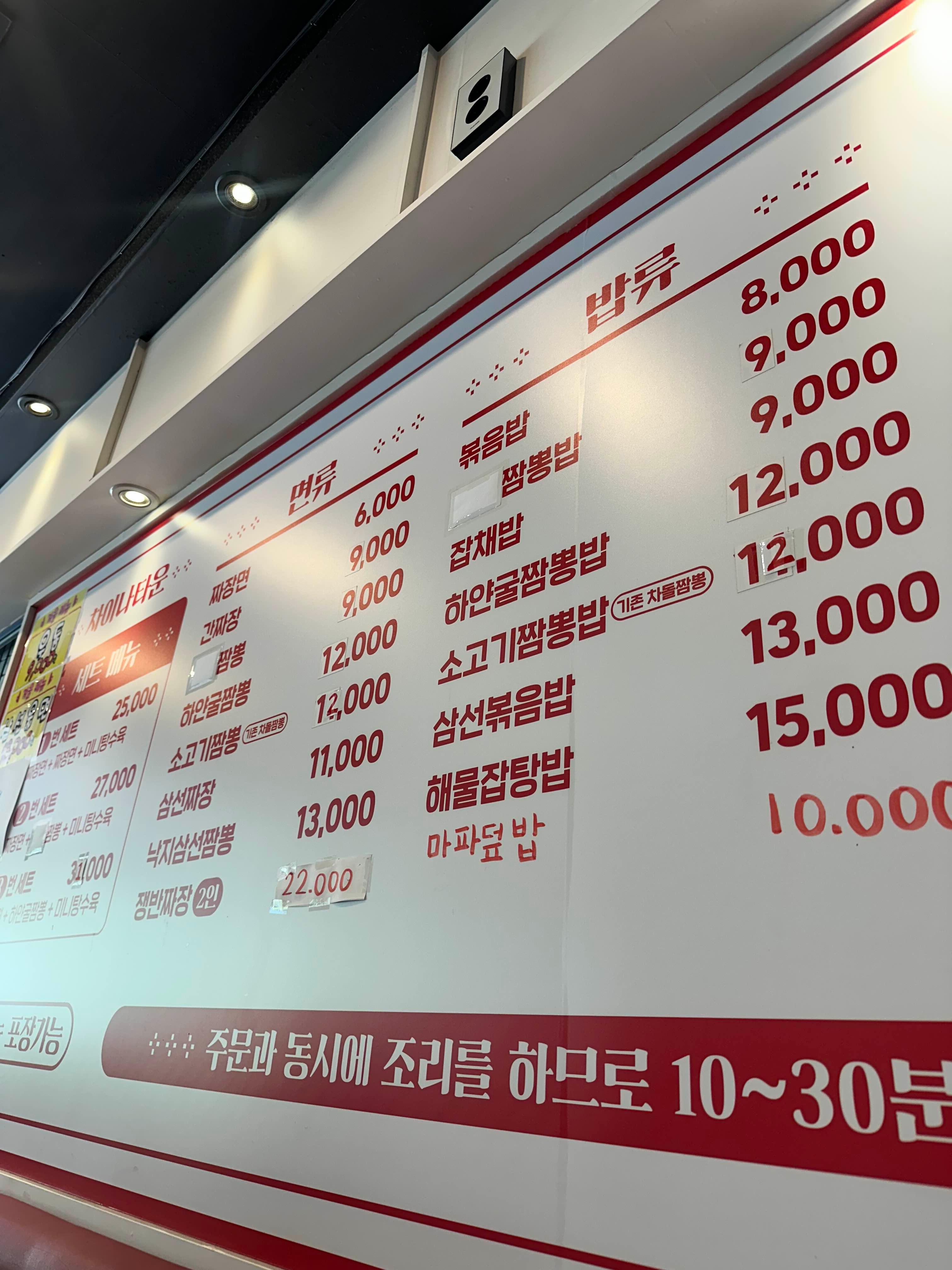 - 짬뽕 9000원